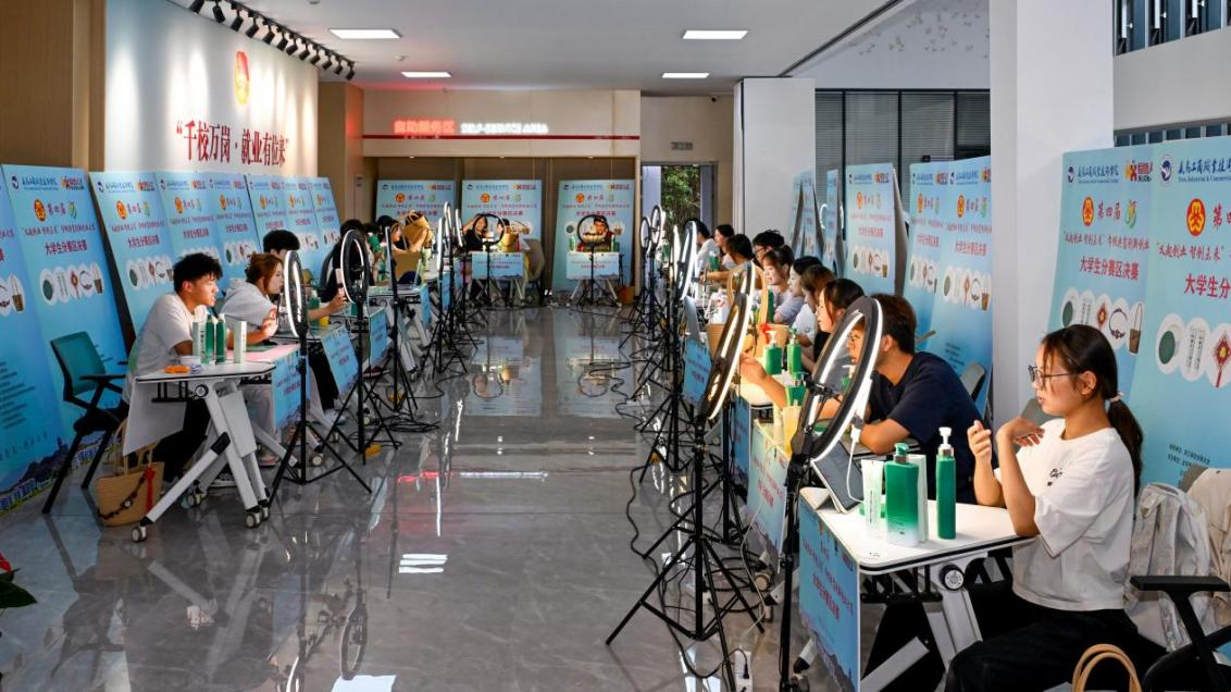 大赛自启动以来,吸引了近百名大学生积极参与。经管为期一个月的直播技能、行业规范和创业素养等内容密集培训,40多名新生主播凭借出色表现成功晋级到决赛阶段。这些从零粉丝、新账号起步的新人主播们充分展现了当代大学生的创业热情。分赛区决赛现场气氛热烈,经过两小时的激烈角逐,选手们不仅赢得了大量观众的关注和喜爱,还取得了令人瞩目的销售业绩。据统计,全场总点赞量达260万,观众总数超过7000人,单笔销售额突破5000元。最终,19位大学生新人主播凭借优异表现赢得了全国总决赛的入场券。
